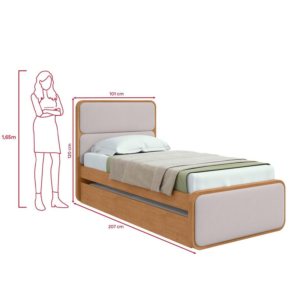 Cama Solteiro Easy Like com Cama Auxiliar Tec Corano Bege/Amêndoa Clean