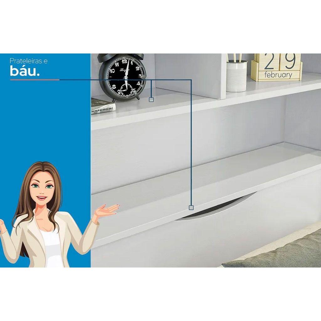 Cama Solteiro Multifuncional Invicta c/ 2 Gavetas Branco - Santos Andirá