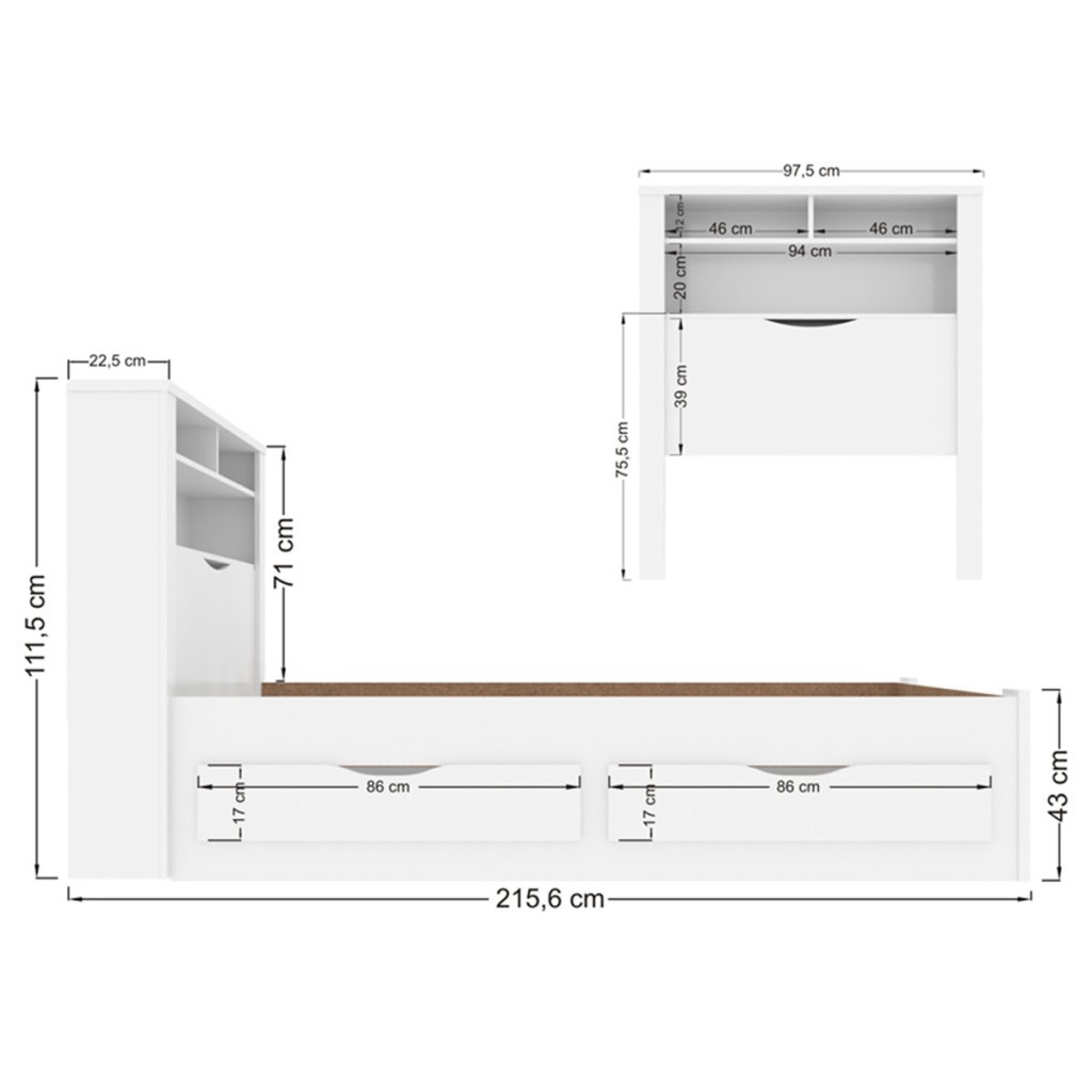 Dimensões: - Altura: 111,50 cm - Largura: 97,50 cm - Profundidade: 215,60 cm - Peso: 64,420 kg Descrição: O(a) Cama Solteiro Invicta 1 Porta 2 Gavetas com Tomada Branco - Santos Andirá é produzido em MDF, MDP e HDF na escala de brilho Semi-Fosco, e possui um grau de dificuldade de montagem: Médio. Seu revestimento/acabamento é: Verniz. Infelizmente a Loja não oferece serviço de montagem, deixamos essa informação bem clara em todas as nossas páginas de produto. Onde especificamos que os móveis chegarão desmontados, e que a montagem fica por conta do cliente. Como não oferecemos esse serviço não embutimos o mesmo no preço dos produtos, ou seja, maior economia para você! Todos os nossos móveis também acompanham o manual de montagem, e caso você queira, pode realizar a montagem você mesmo, sempre especificamos os graus de montagem dos produtos. Nos casos de grau baixo e médio, com pouco ou nenhum conhecimento, você mesmo pode efetuar a montagem, e fazer essa economia. Apenas nos graus de montagem alto, recomendamos a contratação de um montador com experiência, visto que são montagens mais complicadas. A montagem é feita com Parafusos, cavilhas e Minifix.. Este móvel é indicado para que seja utilizado no(a) Quarto, Quarto Bebê e Quarto Infantil, dando um toque especial no cômodo de sua casa. Para que você mantenha seu produto sempre em ótimo estado, recomendamos que use apenas um pano seco ou levemente umedecido, sem o uso de quaisquer produtos abrasivos. A Loja garante aos clientes, 90 dias de garantia nos produtos, porém, recomendamos que entre em contato com o fornecedor/marca do produto, pois o mesmo(a), pode garantir um prazo maior de garantia. Lembrando ainda que: quaisquer objetos decorativos que aparecem nas imagens, não acompanham o produto. Características: - Espessura da Estrutura: 15 mm - Possui Gavetas?: Sim - Quantidade de Gavetas: 2 - Peso Suportado nas Gavetas (Kg): 2 Kg - Material das Corrediças: Metálica - Tipo da Corrediça: Telescópica - Possui Portas?: Sim - Quantidade de Portas: 1 - Material da Porta: MDP - Espessura da Porta: 15 mm - Tipo de Porta: Portas Basculantes - Material das Dobradiças: Metálica - Possui Vidro?: Não - Possui Espelho?: Não - Possui Prateleiras?: Sim - Quantidade de Prateleiras: 3 - Peso Suportado nas Prateleiras:: 1 Kg - Possui Puxadores?: Não - Possui Ripamento?: Não - Linha ou Coleção: Omaha - Montagem Invertida?: Não Pode ser Montado Invertido - Cor interna: Branco e Marrom - É frágil?: Não - Possui distanciador de corrediça?: Não - Possui Nicho?: Não - Material da Estrutura: MDF, MDP, HDF - Escala de Brilho: Semi-Fosco - Acompanha Cabeceira?: Sim - Peso Suportado na Cama: 80 - Possui Rodízios?: Não - Possui Pés?: Não - Acompanha Cama Auxiliar: Não - Acompanha Colchão?: Não - Acompanha Espelho: Não - Acompanha Mesa de Cabeceira: Não - Classificação da cama: Solteiro - Colchão Indicado: Solteiro (88 cm de largura) - Quantidade de caixas de embalagem: 1 - Tipo de cama: Solteiro - Acompanha: Cama + Kit Ferragens + Manual de Montagem - Acompanha Manual de Montagem: Sim - Como os Móveis Chegarão na Minha Casa: Desmontado em caixas, acompanhado de todas as peças, ferragens e manuais para montagem. - Grau de Dificuldade da Montagem: Médio - Necessita de Montagem: Sim - Sistema de Montagem: Parafusos, cavilhas e Minifix. - Garantia (dias): 90 - Indicação de Uso: Quarto, Quarto Bebê, Quarto Infantil - Observação: Objetos decorativos que aparecem nas imagens, não acompanham o produto. - Recomendação de Manutenção: Utilizar pano levemente umedecido, seguido de pano seco. Não utilizar quaisquer produtos abrasivos. - Revestimento /Acabamento: Verniz
