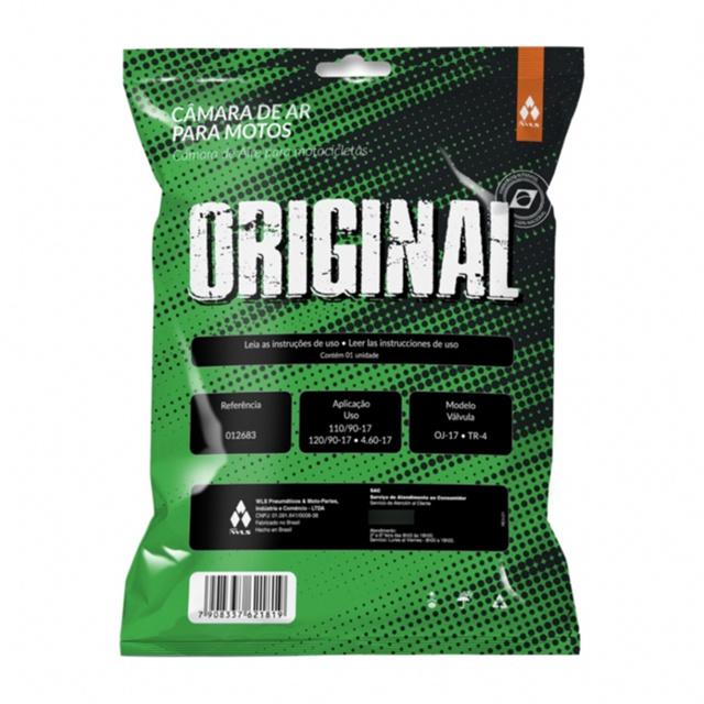-CÂMARA AR MOTO ARO 17 - TRAS. HONDA NXR 125 BROS, NXR 150 BROS, XL, XLX 250 R, Cb 300, Cb400 (110/90-17*TR4) (OJ-17) A Vulcanbor da linha Original desenvolveu a Câmara de Ar 100% Nacional, reconhecida pelo seu alto nível de qualidade e confiabilidade. Com embalagens individuais e seladas, sendo testadas e aprovados pelo nosso setor de qualidade, além de termos um preço mais que justo. Adquira já a sua! CARACTERÍSTICAS DO PRODUTO: Marca: Vulcanbor linha Original - Ref.: 012683 - Material: Borracha - Medidas compatíveis: 4.60-17, 100/80-17, 110/70-17, 110/90-17, 120/90-17, 130/70-17, 130/80-17, 130/90-17 E 140/70-17 - Aro: 17 - Válvula: TR4 - Modelo: OJ-17 - Para roda TRASEIRA - Conteúdo da embalagem: 1 Câmara DIMENSÕES: - Peso: 0,517 kg - Largura: 110 mm - Espessura: 1,5 mm APLICAÇÃO: - Honda XL 250, 250R e R350 - Honda XLX 250R - Honda NXR 125 Bros - Honda NXR 150 Bros - Honda NX 350 Sahara - NX 4 Falcon - Agrale SST, SXT, EX - Elefrantre 16.5 e 30.0 -CB300 -CB400 -CÂMARA AR MOTO ARO 19 - DIANT. HONDA NXR 125/150 BROS, CB 400, CB 450, YAMAHA XTZ 150 CROSSER(90/90-19*TR4)(OJ-19) APLICAÇÃO: - NXR 125/150 BROS - CB 400 - CB 450 - XTZ 150 CROSSER -CÂMARA AR MOTO ARO 21 Valvula Tr-4 OG-21 - DIANT. HONDA FALCON NX400, NX 200, XR 250, XRE 300 (3.00-21, 90/90-21 *TR4) (OG-21) APLICAÇÃO: Pneu Dianteiro: - HONDA XL 125S, XL DUTY - XLR 125, XR-200R - NX 150/200 - XL 250R350R, XLX 250R - NX 350 SAHARA, NX 400 FALCON - XR 250 TORNADO - YAMAHA DT 180, DT 200/200R, XT 225, XTZ 125, TENERE, XT 600, - AGRALE ELEFANTRE 16.5 E 30.0 - KASINSKI RX 12 -CÂMARA AR MOTO ARO 18 - TRAS. HONDA XL, CB, YAMAHA DT 180, DT 200, Lander, Tenere, XRE300 (120/80-18, 4.10-18* TR4) (OJ-18) APLICAÇÃO: - HONDA XL/CB - YAMAHA DT 180 - YAMAHA DT 200 -XR 250 TORNADO -LANDER 250 -CAMARA DE AR VG-18 VULCAN (ARO 18), PARA MEDIDAS 2.75-18/ 90.90-18/ 80.100-18/ 3.00-18 /100/90-18 APLICAÇÃO: Veiculo: CG 125 FAN. Posição: Dianteiro, Traseiro; Posicao: Dianteiro, Traseiro. -CAMARA DE AR OG-18 ORIGINAL (ARO 18), PARA MEDIDAS 2.75-18/ 90.90-18/ 80.100-18/ 3.00-18 /100/90-18 APLICAÇÃO: Veiculo: CG 125 FAN. Posicao: Dianteiro, Traseiro. -CÂMARA DE AR MOTO ARO 14 - TRAS. HONDA BIZ 100, BIZ 125, POP 100 (110/80-14 *TR4) (OJ-14L) -CÂMARA DE AR MOTO ARO 17 - DIANT. HONDA BIZ 100, BIZ 125, POP 100 (60/100-17 *TR4) (OG-17) APLICAÇÃO: - Biz C-100 (Traseiro) - POP 100 (Traseiro) - C 100 Dream (Traseiro) - Biz 125 (Traseiro) - Traxx Prince 110 (Traseiro)