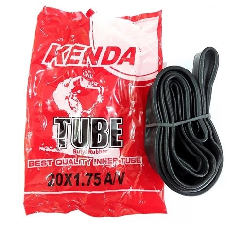 1-Câmara Ar Aro 20 X 1.75 Bico Grosso **ESPECIFICAÇÕES** - Marca: Kenda - Medidas: 20" x 1.75 - Material: Borracha Butyl - Peso: 153 gramas aproximadamente - Aro: 20" - Compatível com Aro 20" pneus de 1.75 até 2.125 de espessura - Válvula: Schrader (Grossa) 35mm