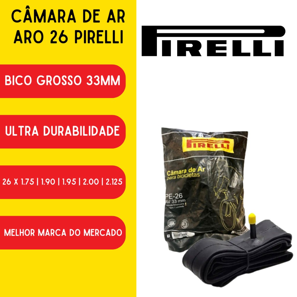 Câmara de Ar Aro 26 Pirelli Bico Grosso 33mm Original Camera para Bicicleta Bike