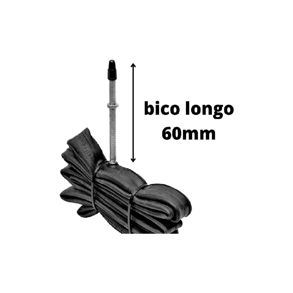 Composição - Borracha butyl Medidas 700x23 Até 28c; Válvula Presta; Comprimento da válvula - 60mm; Emenda invisível; Mais elasticidade; Espessura uniforme; Maior resistência a impactos; Excelente aderência à remendos. Peso: 120g