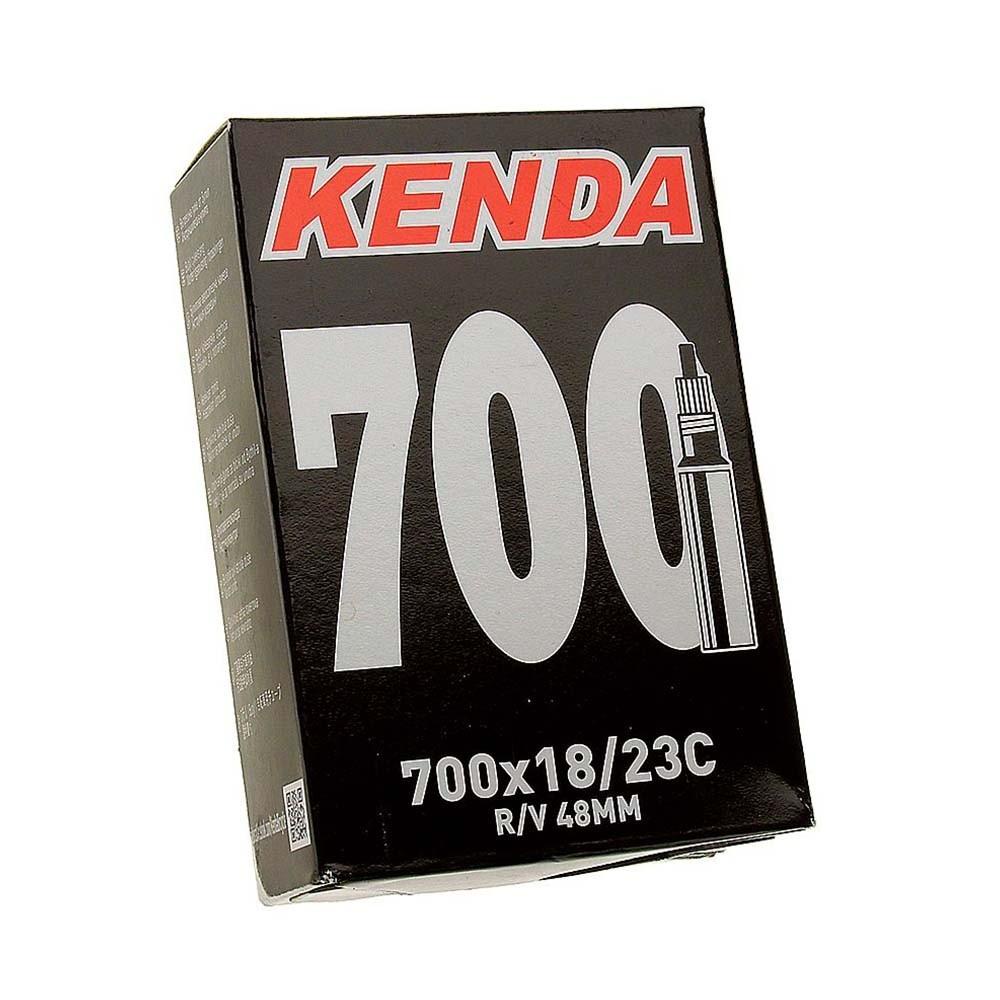 Câmara de ar KENDA para bicicletas Speed aro 700 compatível com pneus 700x18c à 700x23mm, com válvula Presta (fina) 48mm Especificações e Atrativos: - Confeccionada em borracha natural com paredes de 0.9mm para alta resiliência; - Alta qualidade com peso razoável, ideal para uso recreativo e esportivo. Dados Técnicos: - Peso: Aprox. 160g.