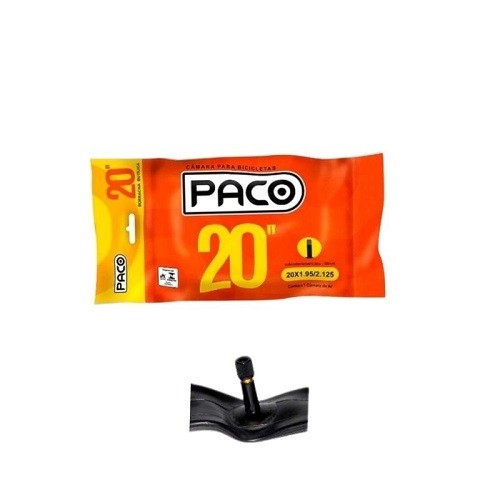Câmara de Ar Paco para Bicicletas aros 16, 20, 24 ,26, 26 ceci, 27, 29 DESCRIÇÃO: Marca: Paco Material: Borracha / Butílica Válvula: 35mm Schrader (grossa) ou Válvula: 48mm Presta ( Fina) Modalidade: MTB, Urbano, Passeio Câmara desenvolvida com borracha butílica, muito mais durável e resistente. Performance e qualidade, são itens indispensáveis para sua bike, e com esta câmara, você terá tudo isso e muito mais..