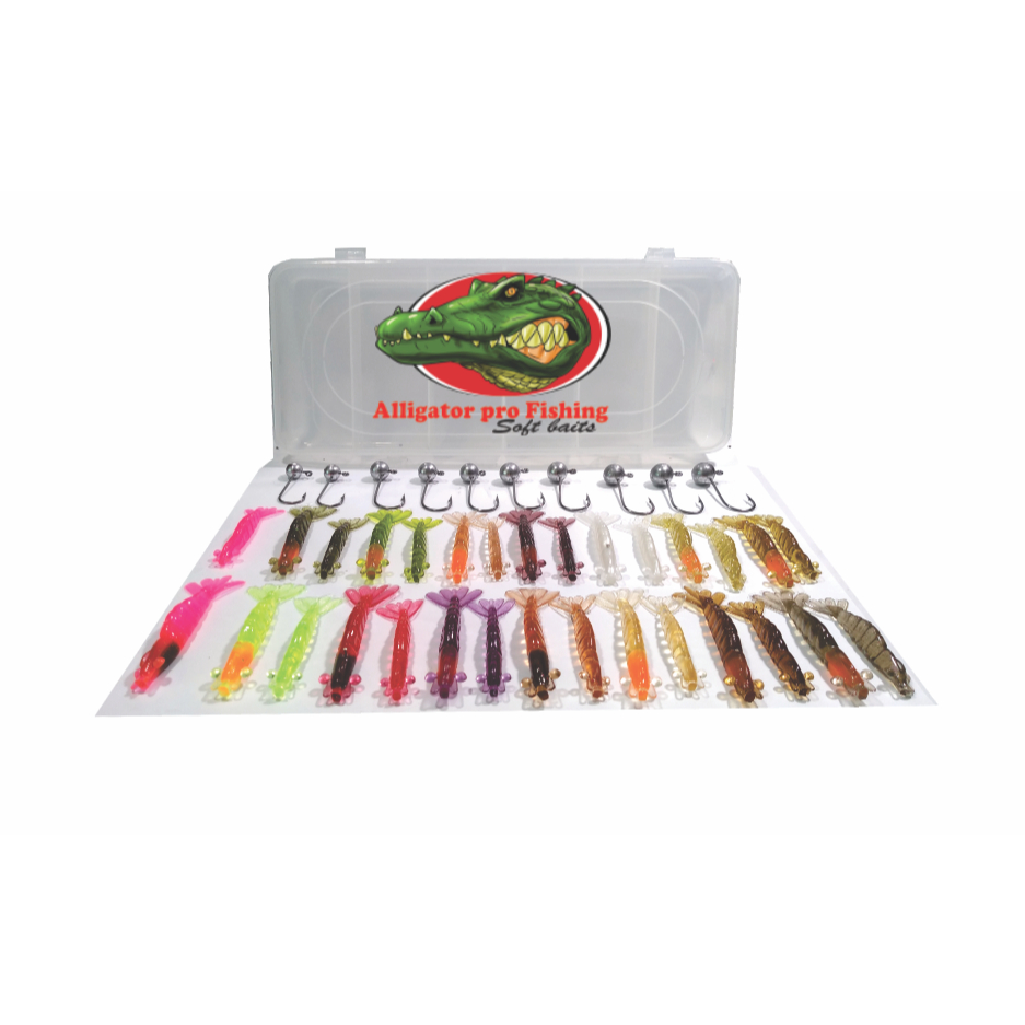 Camarões Artificiais Kit Peva 41 pç - sendo 30 Camarões+10 Jigs + Estojo - PROMOÇÃO ( leia descrição)