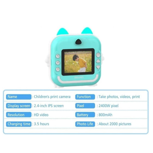 🌟 Principais Vantagens: ✅ Impressão instantânea: Capture momentos especiais e imprima fotos em segundos, sem necessidade de tinta. ✅ Alta resolução: Sensor de 5MP para fotos mais nítidas, com vídeo e fotografia em qualidade Full HD. ✅ Design seguro e compacto: Formato fofo, colorido e leve, feito para as mãos das crianças. ✅ Tela de 2,4”: Exibição clara para visualizar e escolher fotos antes de imprimir. ✅ Fácil de usar: Controles simples, perfeito para crianças pequenas explorarem com autonomia. ✅ Alimentação prática: Recarga por cabo USB incluso. ✅ Estimula a criatividade: As crianças podem personalizar suas fotos e criar suas próprias recordações. 📌 Especificações: Resolução: 5 MP Tela: 2,4 polegadas Impressão: Térmica, sem tinta Conectividade: USB Formato compacto e leve 📦 Itens inclusos: 1x Câmera de impressão infantil 3x Rolos de papel para impressão 1x Cabo USB para carregamento 1x Cordão para transporte 1x Manual do usuário