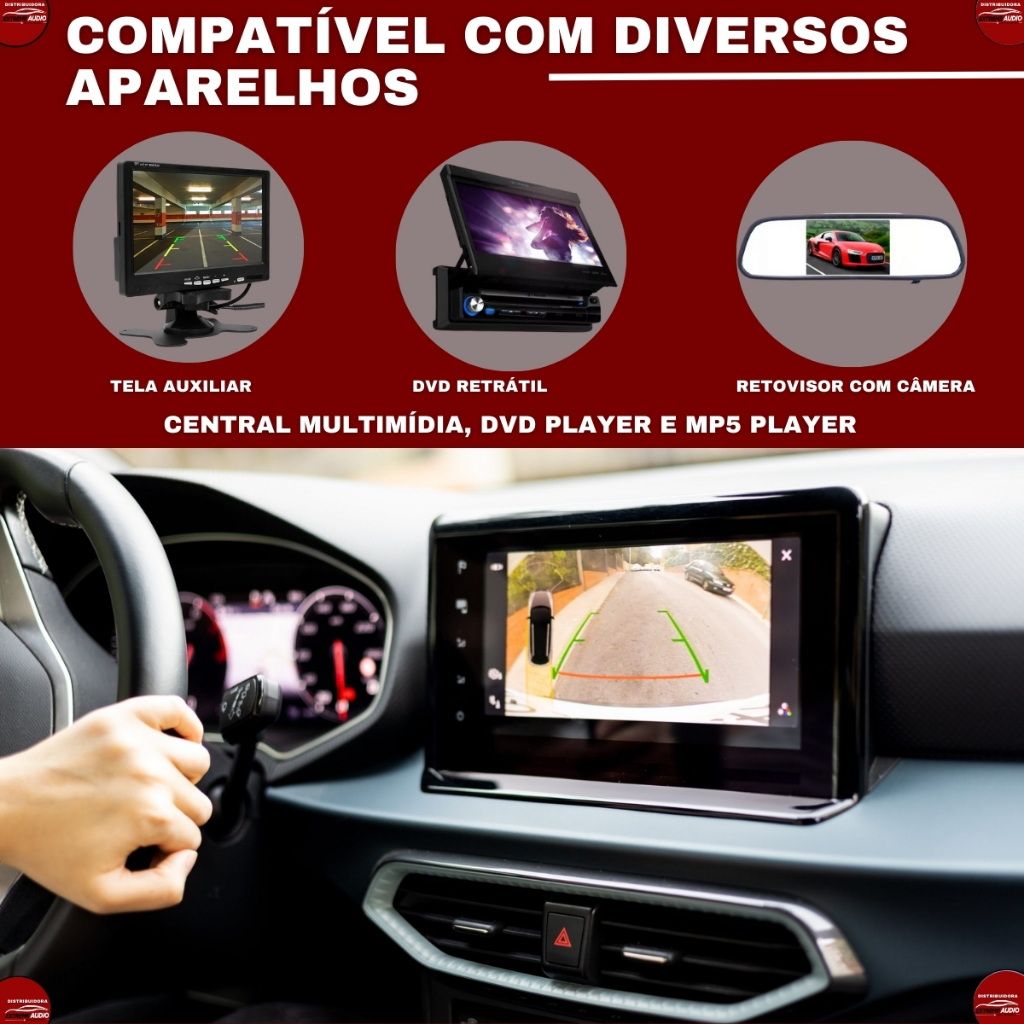 Unidade Camera De Re Automotiva Colorida Borboleta ou Embutir com Funcao Dianteira ou Traseira ASX Evite acidentes executando manobras com muito mais seguranca ao adquirir uma camera de re ou dianteira! PRINCIPAIS CARACTERISTICAS: . Facil instalacao; . Resistente a agua . Compacta e discreta, nao afetando a aparencia do veiculo; . Imagem nitida e colorida; . Visao noturna: nao tem infravermelho, mas e possivel enxergar a noite dependendo da iluminacao externa; . Compativel com Radio, Multimidias, GPS e Retrovisores; . Dupla funcao: pode ser usada tanto na parte dianteira como na traseira do veiculo (escolha no momento da instalacao);* . Camera 2x1: pode ser instalada embutida (furacao com 18,5mm de diametro) ou fixada externamente pelo suporte borboleta; . Possui linhas de estacionamento/demarcacao fixas, ou seja, nao acompanham o movimento do volante. E voce tem a opcao de desativa-las.* ESPECIFICACOES TECNICAS: . Marca: ASX . Angulo de Visao: 120 ~ 170 graus . Resolucao: 420p . Sistema de Cor - Pixels: NTSC/PAL 728X628. . Iluminacao Minima = 0,2 Lm . Sensibilidade = +48 dB . Saida de Video = Normal 1,0 Vp-p/75 . Voltagem de Operacao = 12V DC . Consumo: 0,5W . Temperatura de Operacao = -20Co ~ +60Co . Temperatura de Armazenagem = -30Co ~ +60Co . Classificacao de IP: IP67-IP68 . Garantia: 90 dias junto a ASX Codigo fabricante: ASX Codigo de barras: 7891192431214 CONTEUDO DA EMBALAGEM: . 1 Camera Automotiva ASX . 1 Suporte interno e acabamento da camera para instalacao embutida . 1 Suporte borboleta e acabamento da camera para fixacao externa . 1 Cabo de video RCA com 5 metros com fio de acionamento . 1 Cabo de forca AC com 1 metro com plug para ligacao 12v . 1 Serra copo para uso na instalacao embutida (18,5mm de diametro) . 2 parafusos para fixacao externa no suporte borboleta