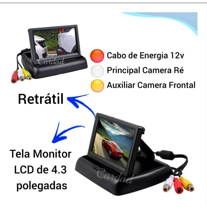 Câmera de ré visão noturna + Tela monitor retrátil 4.3 polegadas
