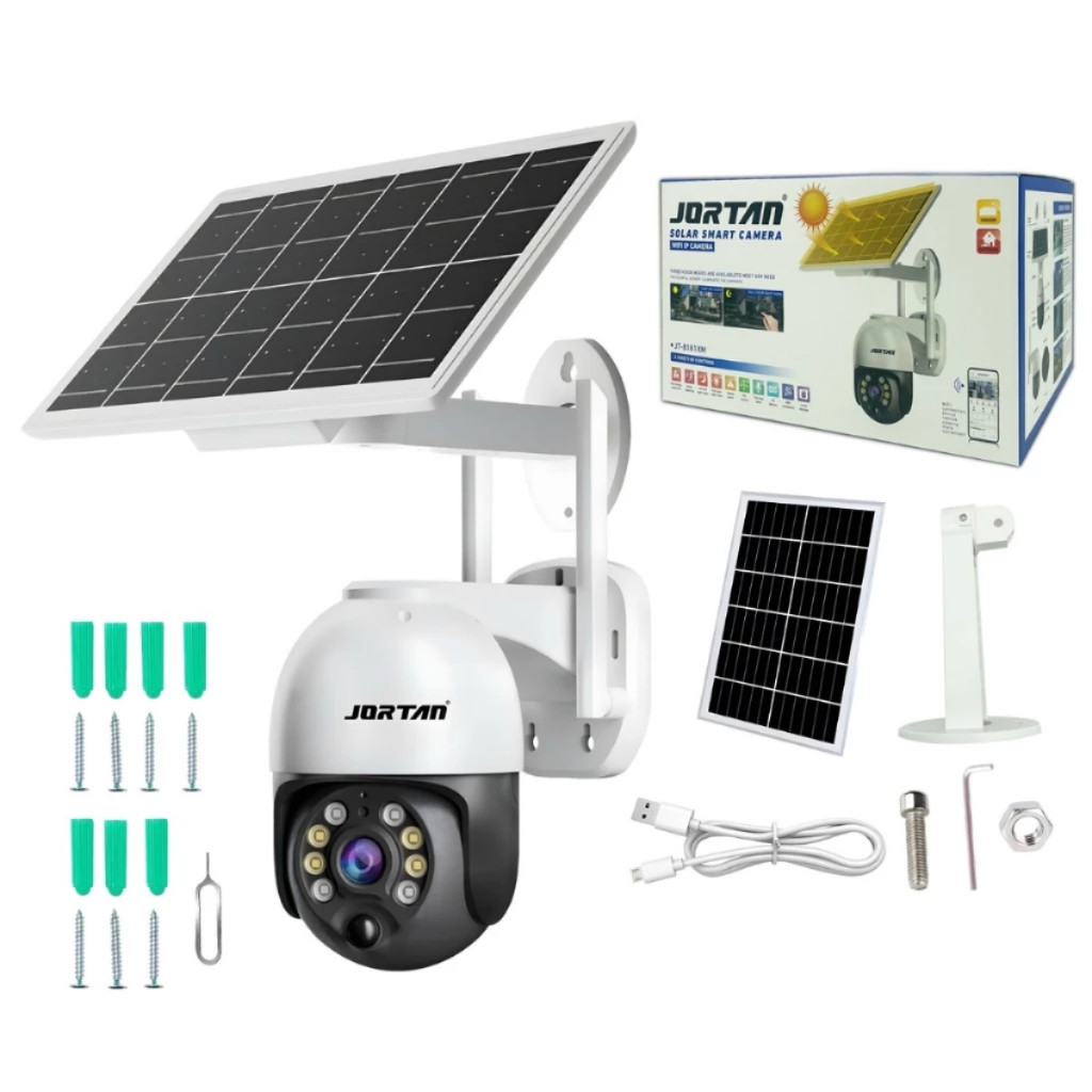 - Bateria interna inclusa ( 12.000mAh ) - Nível de carga de bateria pelo aplicativo - Painel solar - Instalação livre de fios - Compatível somente com Wifi 2.4Ghz - Aplicativo iCSee ( Android e iOS ) - Sistema inteligente de hibernação e economia de bateria - Detecção de Movimento aprimorado PIR - Motor que rotaciona 0-270º na horizontal - Motor que rotaciona 0-90º na vertical - Sistema PTZ - Alta resolução de imagem FULL HD - 3 Mega Pixels - Visão noturna colorida ou preto e branco - Suporte a cartão MicroSD Classe 10 de até 128Gb ( não incluso ) - Incluso 6 baterias 18650 de 2.000mAh cada ( total de 12.000mAh ) - Resistente a sol e chuva IP66 - Visualização ao vivo pelo app no celular - Opções de ajuste de alarme - Baixo consumo de energia - Audio bi-direcional ( escuta e fala ) - Zoom Digital de até 4X - Fale e escute pelo aplicativo iCSee - 2 Antenas Wifi - Opção de ligar fonte 5v via cabo MicroUSB - Envio imediato para todo Brasil >> O QUE VOCÊ RECEBE EM SUA CASA: - 1 Câmera de Segurança Jortan para uso externo resistente a água FULL HD - 1 Suporte de instalação do painel solar - 1 Painel solar - 6 Baterias já instaladas no painel solar ( Total 12.00mAh ) - Kit de parafusos e buchas - Manual em inglês