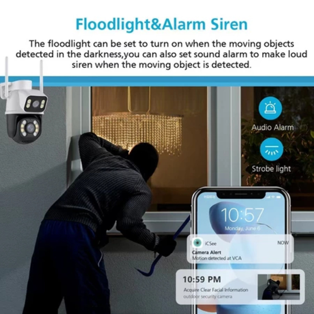 ENVIO IMEDIATO! Todos os produtos são testados antes do envio!! Qualquer dúvida, entre em contato, responderemos o mais rápido possível, em horário comercial !!! Maximize a segurança do seu espaço com a câmera de segurança de última geração, oferecendo visualização em alta definição 4K e 6MP através do app ICSEE. Compatível apenas com Wi-Fi 2.4G, este dispositivo permite monitorar até 5 câmeras simultaneamente, garantindo cobertura total. Ideal para indústrias, residências e mais, suporta armazenamento na nuvem e detecção de movimento. Fácil de instalar e resistente à água, é a escolha perfeita para vigilância avançada e tranquila. APP: ICSEE 🔘Slot para cartão: Sim – Classe 10, até 128G. 🔘Compatibilidade: Android / IOS 🔘Alta definição: 1080P - 30fps podendo chegar até a resolução 4K 🔘Ângulo de visão: 120º 🔘Câmera: 3 MP em cada lente 🔘Lente: 3.6mm 🔘Rotação: 355° 🔘Zoom digital: 4x 🔘Motorizada 🔘Capacidade de armazenamento: 128GB 🔘Interface de rede: Wi-Fi/802.11/b/g 🔘Visibilidade noturna até 25 metros COMPATIBILIDADE: 🔘iPhone/iPad (IOS); 🔘Android. 📦Itens Inclusos: 1x Câmera Dome IP PTZ 1080P. 1x Fonte de Alimentação DC 12V-2000mA (bivolt 100-240V). 1x Sistema de Vedação Para Cabo RJ45. 4x Parafusos. 4x Buchas. 1x Manual de Instruções. ❓Perguntas frequentes: 📝A câmera é compatível com redes 5G? R: Não, a câmera só suporta conexões Wi-Fi 2.4G. Certifique-se de que sua rede é compatível antes da compra. 📝Posso visualizar imagens de várias câmeras no mesmo aplicativo? R: Sim, o aplicativo ICSEE permite a visualização de até 5 câmeras simultaneamente, proporcionando uma monitoração abrangente do local desejado. 📝Qual é a resolução das imagens capturadas pela câmera? R: A câmera oferece imagens de alta definição, com resolução 4K e 6MP, garantindo detalhes nítidos e claros para uma vigilância eficaz. 📝A câmera tem detecção de movimento? R: Sim, ela possui recursos avançados de detecção de movimento, permitindo a configuração de alarmes e notificações em tempo real para qualquer atividade suspeita detectada. 📝Como funciona a rotação da câmera? R: A câmera PTZ pode girar 270° horizontalmente e 90° verticalmente, permitindo uma visão abrangente do ambiente monitorado. O zoom digital de 1.0-4.0x ajuda a ver detalhes mais específicos. 📝Qual é o processo de instalação da câmera? R: A câmera foi projetada para ser fácil de instalar, com um processo simples que pode ser completado seguindo as instruções fornecidas. Não é necessário um sistema de gerenciamento de vídeo físico como um DVR. 📝Como posso acessar as gravações da câmera? R: As gravações podem ser acessadas através do aplicativo ICSEE, onde você pode visualizar imagens em tempo real ou reproduzir gravações armazenadas tanto na nuvem quanto no cartão de memória da câmera.
