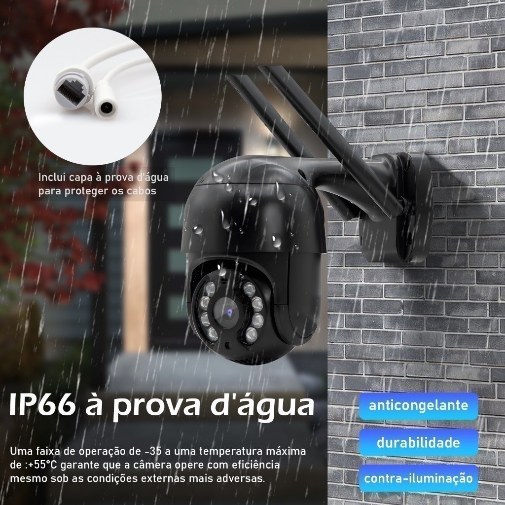 Câmera de Segurança Speed Dome Externa Ip Wifi Full Hd COM INFRA VERMELHO E SLOT PARA CARTÃO DE MEMORIA SD ATE 128 GB Android & Iphone Aplicativo Computador: CMS Compatível com Protocolo ONVif Possivel Utilização com NVR Suporte a Gravação em Nuvem Direto do Aplicativo yousee Detalhes do produto: Modelo: HZ-A8 Sensor de imagem: 1/3 CMOS Qualidade de Imagem: FHD 1080p / SD 640x320 Lentes: 6mm Modo dia e noite: comutação automática IR-CUT. Número de lâmpadas infravermelhas: 4 Até 50 Metros Visão Noturna: visão noturna de cor inteligente B/W /Color/Smart Dual Light Source 4 white Light+ 4 IR Ângulo de rotação: Pan 0-355 °, inclinação 0-90 ° Interface de rede: 10 / 100M Base Ethernet, interface RJ45 Detecção de Movimento: Envio de Alertas (Não segue o alvo) Tamanho do produto: 20cm x 16cm x 11cm Tensão de entrada: saída DC 12V / 2A entrada RJ45 Consumo de energia: 10W Distancia Infravermelho com Detalhes: 15 M Peso: 0,55 kg Tamanho do Cabo da Câmera: 45 CM Tamanho do Cabo da Fonte Blindada: 25 CM Câmera de Segurança Speed Dome Externa Ip Wifi Full Hd COM INFRA VERMELHO E SLOT PARA CARTÃO DE MEMORIA SD ATE 128 GB IP67 - Produto pode ficar ao tempo sem nenhum problema. Fácil Configuração Via Wifi ou Cabo de Rede Padrão RJ45 Não Suporta Redes 5GHz Itens incluso: 01 Câmera WiFi 02 Antena WiFi 01 Conjunto de fixação 01 Manual do usuário