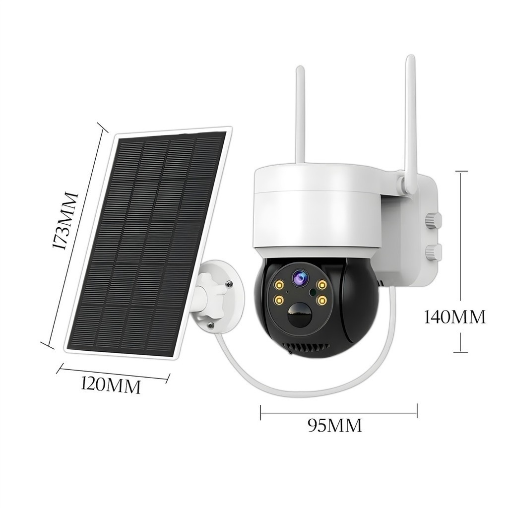 Câmara PTZ de alerta de energia solar Q6 0-10 metros e disparo em espera de longa distância, arranque mais rápido Bateria de 4600mAH e espera de cerca de 1 mês Gravação automática de alarme a cores 2Mega pixels reais, lente de alta penetração, imagem de alta qualidade Visão noturna com luz dupla Suporte para detecção de movimento humano, envio preciso de alarme APP Intercomunicador bidirecional de voz em tempo real, a qualquer hora e em qualquer lugar para se comunicar Armazenamento de cartão TF sem rede, vídeo de armazenamento em nuvem com mais segurança IP65 à prova d'água, à prova de poeira, vento e chuva sem medo Principais Parâmetros Modelo Q6 Nome do produto Câmara PTZ de alerta de energia solar Modo de funcionamento ICSEE Chipset DSP de 32 bits de núcleo duplo (GK7202V200) Sensor 2MP 1/3" F37P CMOS de baixa iluminação Lente 4mm Distância IR 10 metros Visão noturna a cores 10 metros Modo de comutação Auto/Manual Principais Suporte de entrada de áudio Suporte de intercomunicação bidirecional Suporte para detecção de movimento Suporte à detecção humana Suporte de ligação de alarme Suporte para envio de alarme Visualização/reprodução remota Suporte Suporte para armazenamento na nuvem Armazenamento local Extender / suportar cartão TF 128G Restauração das predefinições com uma tecla Suporte Tecla de reposição Suporte Outros parâmetros Parâmetros Sensibilidade à luz Dinâmica inteligente Codificação e descodificação de imagem H.265 Sistema de vídeo 1080P@12FPS Modo de vídeo SD/HD Suporte para inversão de imagem Alarme áudio Suporte da função de alarme de voz para detecção humana Transmissão de rede Wifi Material do invólucro ABS Peso / Instalação Suspensão na parede Bateria 4600mA Bateria recarregável Potência do painel solar 3W Distância de ativação em espera 9 metros Nível de impermeabilidade IP65 Ângulo de detecção de disparo 110° Tamanho da embalagem 197*180*138mm/0.99KG O pacote inclui 1 x Wifi câmera solar 1 x painel solar 1 x suporte do painel solar 1 x manual do usuário