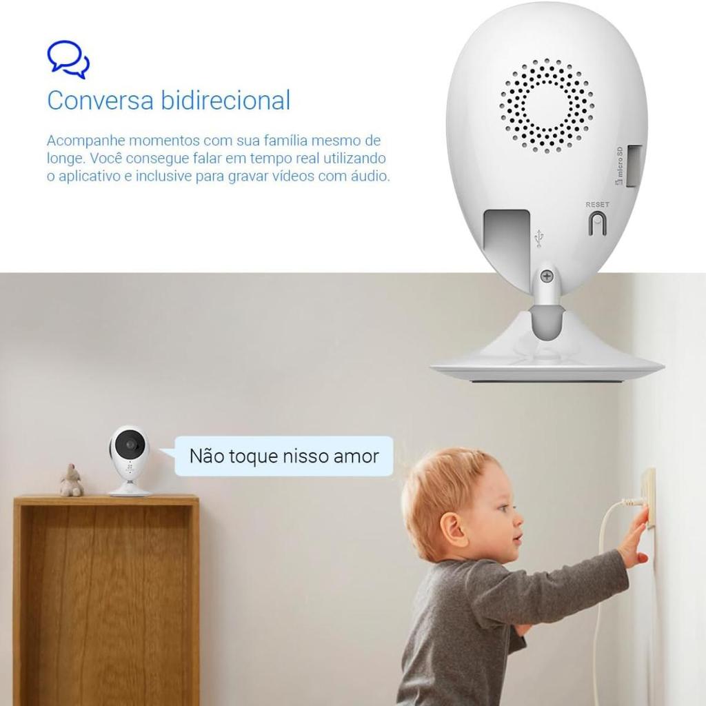 Simplicidade e eficiência com base magnética. A C2C (ou Mini O) é a câmera perfeita para monitoramento de pets, bebês ou pequenas salas. Seu design minimalista inclui uma base magnética, permitindo que ela seja fixada em geladeiras ou superfícies metálicas sem a necessidade de furos. Principais Destaques: Instalação Flexível: Base magnética e kit de montagem fácil. Visão Grande Angular: Lente que cobre uma ampla área do ambiente. Áudio Bidirecional: Converse com quem está no ambiente em tempo real. Alertas de Movimento: Receba notificações instantâneas no celular. Visão Noturna Automática: LEDs infravermelhos para monitoramento 24h. Especificações Técnicas: Modelo: CS-C2C-B0-1E2WF Resolução: Full HD (1080p). Conexão: Wi-Fi 2.4 GHz. Armazenamento: Slot para MicroSD (até 256GB).