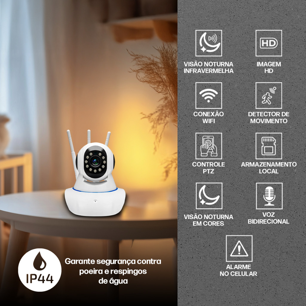 | Câmera IP Wi-Fi 360° 3 Antenas HD Babá Eletrônica Smart Visão Notur... este produto | R$ 85,90 | 41% | 5.0/5 | 8 |