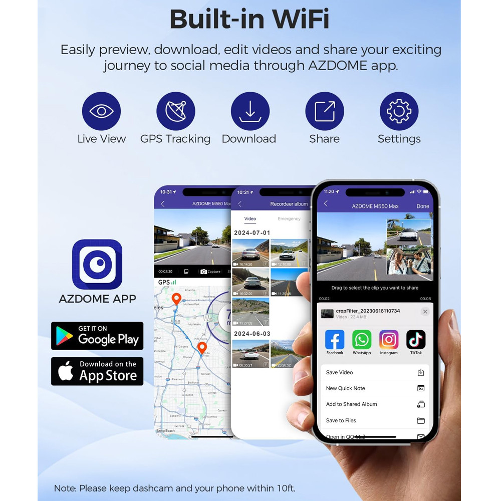 Câmera Painle Azdome M550 Max 4K 3 Canais Dash Cam, Gravação Frontal, Traseira e Lateral, Visão Noturna, Detecção de Movimento, GPS Integrado, Wi-Fi 5G, Gravação e Segurança Completa 1. O que é a Azdome M550 Max 3 Canais? A Azdome M550 Max é uma câmera de painel (dashcam) de 3 canais com gravação em 4K na frente e 1080P nas câmeras traseira e lateral. Equipado com Wi-Fi 5G, GPS integrado e visão noturna, é perfeito para monitorar seu veículo em todas as direções. 2. Por que escolher a Azdome M550 Max? Com gravação em 4K para a frente do veículo e 1080P para as câmeras traseira e lateral, a Azdome M550 Max garante cobertura total. O Wi-Fi 5G e GPS integrado tornam o compartilhamento e o rastreamento das gravações rápidos e práticos. 3. Impacto da Azdome M550 Max para a segurança do veículo A Azdome M550 Max oferece uma cobertura de 360° ao redor do veículo, com visão noturna e detecção de movimento para garantir que você registre todos os eventos importantes. O GPS embutido ajuda a rastrear a localização exata em caso de incidentes. 4. Como a Azdome M550 Max age no seu dia a dia? A instalação da Azdome M550 Max é simples, e a câmera começa a gravar automaticamente assim que o veículo é ligado. A gravação contínua em loop e o GPS garantem que todas as informações importantes sejam registradas sem interrupções. 5. Características adicionais e praticidade Compacta e discreta, a Azdome M550 Max oferece alta qualidade de gravação e fácil operação. O Wi-Fi 5G permite o compartilhamento imediato das gravações, e as câmeras adicionais garantem cobertura em todas as direções. Garantia de 90 dias