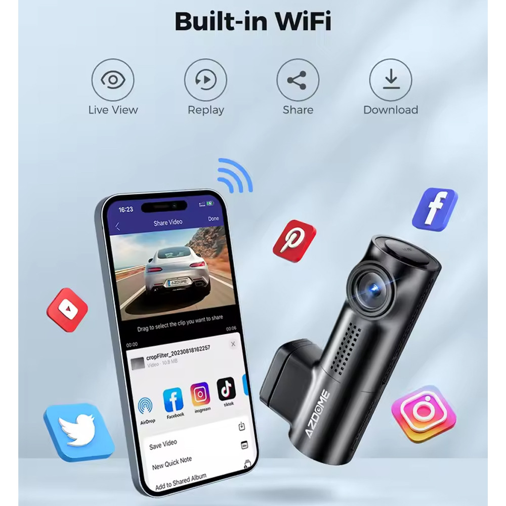 Azdome WiFi Dash Cam FHD 1080P Frente para Carros M330, Visão Noturna, Detecção de Movimento, Conectividade WiFi, Gravação de Alta Performance, Perfeita para Segurança Veicular 1. O que é a Azdome M330? A Azdome M330 é uma câmera de painel (dashcam) com gravação Full HD 1080P para a frente do veículo. Ela oferece gravações nítidas, com Wi-Fi integrado para fácil visualização e compartilhamento das imagens diretamente no celular. 2. Por que escolher a Azdome M330? A Azdome M330 é ideal para quem busca uma dashcam de alta qualidade, compacta e eficiente. A gravação Full HD 1080P garante imagens detalhadas, enquanto o Wi-Fi integrado permite acesso remoto às gravações de forma rápida e prática. 3. Impacto da Azdome M330 para a segurança do veículo Com detecção de movimento e visão noturna, a Azdome M330 proporciona gravações claras mesmo em condições de pouca luz. Ela é perfeita para monitorar seu veículo e ter mais segurança, registrando tudo o que acontece ao redor. 4. Como a Azdome M330 age no seu dia a dia? A instalação é simples e a câmera começa a gravar assim que o veículo é ligado. A Azdome M330 grava automaticamente e substitui os arquivos mais antigos quando o armazenamento está cheio, garantindo gravações contínuas sem necessidade de intervenção. 5. Características adicionais e praticidade A Azdome M330 possui Wi-Fi integrado para facilitar o compartilhamento das gravações e oferece uma visão clara de tudo o que acontece à frente do veículo. Compacta, discreta e fácil de usar, é a solução ideal para quem busca segurança adicional. Garantia de 90 dias.