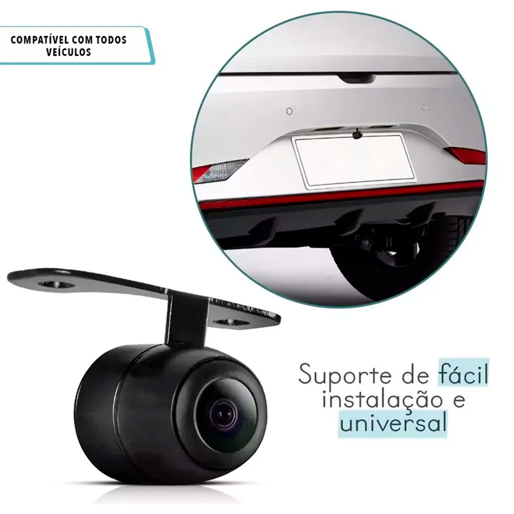 Câmera Ré 2x1 First Option XD-021E 170° Compacta Lente à Prova Dágua RCA Cabo 6m Broca Instalação