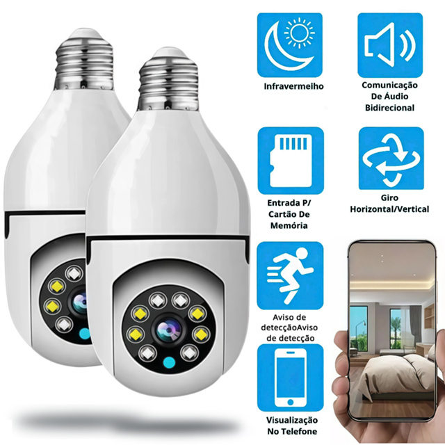 | Câmera Segurança Lâmpada Wifi Full HD Sem Fio 360 Icsee Visão Notur... | R$ 51,99 | 48% | 4.9/5 | 8.3 mil |