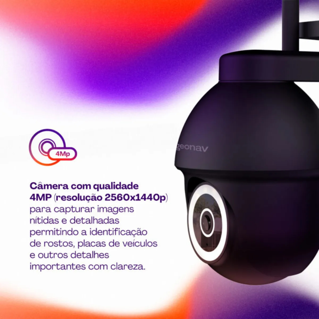 Câmera Segurança Externa PTZ Wi-Fi 360° graus 3K 4MP (Full HD) Visão Noturna - Geonav