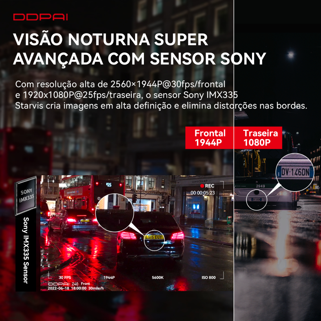 Câmera Veicular DDPAI Z40 1944P+1080P WiFi App SR e GPS Modo de Estacionamento 24H Noite Visão
