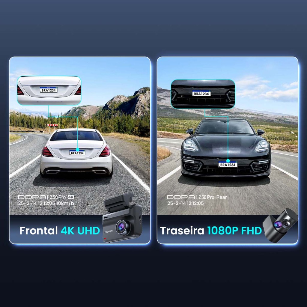 ================NOTA================ 1. O monitoramento de estacionamento em tempo real requer a caixa 4G e um cartão SIM (o produto não inclui o cartão SIM). 2. A caixa 4G precisa ser usada com o Hardwire Kit para habilitar a função de monitoramento remoto. 3. Este produto não inclui Cartão SD e Hardwire Kit (que pode ser utilizado para ativar o monitoramento de estacionamento 24 horas). ======Clique na página da loja para ver e comprar!====== -- 1. É necessário um cartão micro SD formato Class 10 ou micro SD U3 para vídeos em alta resolução. (Nota: o cartão SD não está incluído. Procure um cartão SD na loja). Não utilize cartões "SanDisk Ultra" de outros fornecedores ou cartões "Generic Class 10 for HD Video". -- 2. Kits Hardwire de outras marcas não são compatíveis com as câmeras DDPAI. Utilize o Hardwire Kit exclusivo da DDPAI (procure o Hardwire Kit na loja) para ativar o monitoramento de estacionamento 24 horas. Sem o Hardwire Kit, a câmera veicular monitorará e gravará apenas enquanto o veículo estiver ligado. ========= Detalhes do produto ========= - Modelo: Z50 Pro - Especificações: 5V == 2A - Resolução: 3840 x 2160 @25fps (Frontal) 1920 x 1080 @25fps (Traseira) - Lente: F1.8, campo de visão de 143°, 2G4P (Frontal) F2.0, campo de visão de 124°, 2G2P (Traseira) - Codificação de Vídeo: H.264 & AI.265 - Formato de Vídeo: MP4 - IMU: Sensor G de 3 eixos - Supercapacitor: Suportado - Armazenamento: Suporta até 512GB de cartão MicroSD - Wi-Fi: Wi-Fi 6 (5GHz / 2.4GHz) - Bluetooth: BLE5.4 - GNSS: Suporta GPS, BDS, GLONASS - Dimensões: 83*64.7*36.8mm - Peso: 187g - Tela: Tela de 3 polegadas - Interface de Energia: USB Tipo-C - Temperatura de Operação: -20°C ~ 70°C - Temperatura de Armazenamento: -40°C ~ 85°C ============== Descrição ============== 1. Resolução 4K + 1080P Experimente uma qualidade de vídeo impressionante, com a câmera frontal suportando resolução real de 4K (3840x2160@) e a câmera traseira com resolução de 1080P. O Z50 Pro captura com precisão cada ângulo, oferecendo imagens claras e ricas em detalhes, trazendo sua jornada à vida. A câmera frontal de 143° e a câmera traseira de 124° reduzem os pontos cegos, ajudando você a trocar de faixa e estacionar com segurança. 2. Tecnologia NightVIS 2.0 e Processamento de Imagem AI O Z50 Pro é equipado com a avançada tecnologia NightVIS 2.0 da DDPAI e processamento de imagem AI ISP, melhorando a visão noturna e garantindo que, mesmo em ambientes extremamente escuros, a vigilância de estacionamento forneça imagens mais brilhantes e claras. *O AI ISP é ativado apenas no modo de gravação com atraso e requer o uso do Hardwire Kit (vendido separadamente). 3. Conexão 4G (A funcionalidade 4G requer a compra separada do "módulo 4G" e "Hardwire Kit") Receba notificações imediatas de eventos no aplicativo DDPAI, incluindo localização, hora e imagem. Se ocorrer um evento anômalo, as imagens e capturas serão carregadas automaticamente para a nuvem, permitindo que você visualize e baixe os arquivos facilmente no aplicativo DDPAI, garantindo a segurança dos dados. 4. Sistema de Monitoramento de Estacionamento 24h (Necessário a compra separada do Hardwire Kit) Equipado com um sistema de gerenciamento de energia IPS, detecta automaticamente a voltagem do carro para evitar que a bateria se esgote. O modo de gravação com atraso economiza espaço de armazenamento, enquanto o modo de detecção de colisão inicia automaticamente a gravação de imagens em alta definição ao detectar um impacto, registrando com precisão os momentos críticos, mesmo quando o veículo não está supervisionado, protegendo seu carro. 5. Tecnologia Wi-Fi 6 e Controle via APP Com Wi-Fi 6 de 13MB/s em 5GHz, nossa câmera veicular transmite vídeos 4K de 300MB em apenas 23 segundos, 63% mais rápido do que as câmeras veiculares padrão de 5GHz (8MB/s, que demora 38 segundos), o que é crucial para compartilhar provas após um acidente. O aplicativo DDPAI (para iOS/Android) permite pré-visualizar e salvar vídeos em tempo real, sem atrasos. 6. Suporte para Cartão MicroSD de 512GB O Z50 Pro suporta cartões MicroSD de até 512GB, oferecendo espaço de armazenamento suficiente para gravações contínuas em 4K, sendo ideal para viagens longas e monitoramento. *O cartão MicroSD deve ser comprado separadamente. Recomenda-se o uso de cartões U3 para melhor desempenho. 7. Sistema Avançado de Assistência ao Motorista ADAS 2.0 Fornece alertas de segurança em tempo real e configurações personalizáveis, oferecendo assistência ao motorista de forma prática e personalizada, garantindo uma viagem mais segura e confortável. 8. Módulo GPS de Alta Precisão Integrado O Z50 Pro vem com um módulo GPS de alta precisão para rastrear o caminho percorrido, tempo, velocidade e localização. Todas as informações podem ser visualizadas no aplicativo DDPAI. 9. Efeito de Condução SR 2.0 Fornece informações dinâmicas e outros dados de forma única e impressionante.