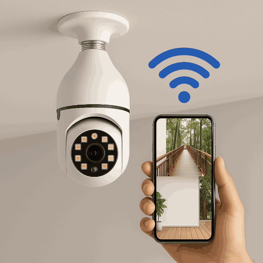 Câmeras Lâmpada Wi-Fi 360° com Visão Noturna e Controle pelo Celular – Fácil Instalação ✅