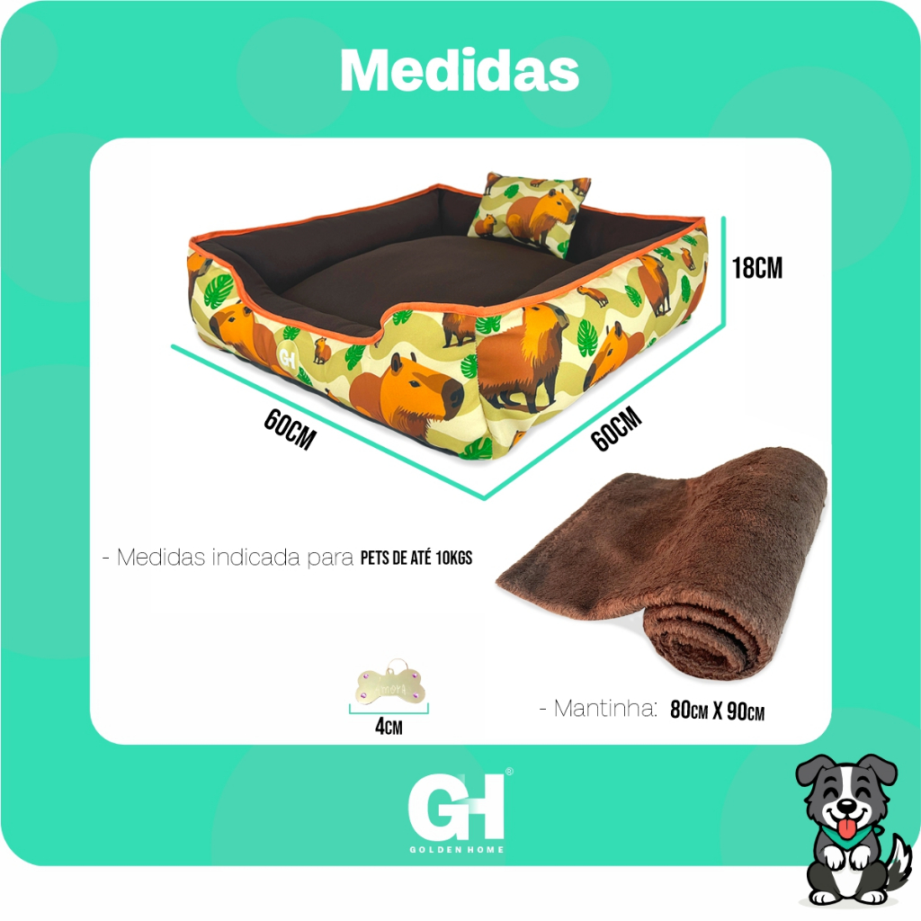 DESCRIÇÃO É Isso mesmo que você viu, caminha pet com Sherpa (Lã de carneiro sintética) e estampadas, imagina o quão quentinho ele(a) irá ficar <3 - Enchimentos removíveis através de zíper (facilita no ato da lavagem, lavando apenas a capa da cama) - Fundo impermeável (não passa umidade nem friagem) - Tecido Interno quentinho (Sherpa lã de carneiro das nuvens e gateiros) Recomendamos esse tamanho 60x60: Para pets de porte pequeno / médio de no máximo até 10kgs por exemplo: Lhasa, Shitzu, YorkShire entre outros... CONTÉM: 01 - Caminha 60x60cm 01 - Travesseirinho 01 - Manta Soft 80x95cm 01 - Plaquinha de identificação ESPECIFICAÇÕES TÉCNICAS Medidas externas: 60CM Largura X60CM Comprimento Interna: 40cm Largura X 40cm Comprimento COMPOSIÇÃO: TECIDO: 100% Poliéster / Sherpa (Lã de carneiro sintética) Enchimento: 100% Fibra de Poliéster SilIconado Virgem *ATENCÃO: Todas as medidas são aproximadas. As cores podem variar dependendo do celular ou computador que você esteja utilizando ou até mesmo por conta do fornecedor de matéria prima (tecido). Ficou com alguma duvida? Entre em contato conosco no chat, será um prazer poder lhe ajudar :D Atenciosamente Golden Home