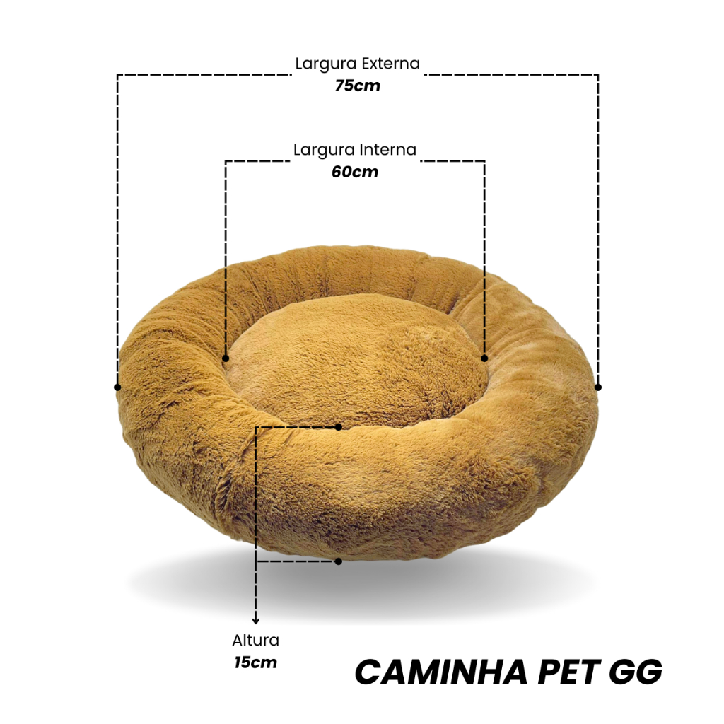 Caminha Pet Redonda de Pelúcia Tamanho Gigante 75cm Cachorro Médio Grande Pelúcia Fofinha Quentinha