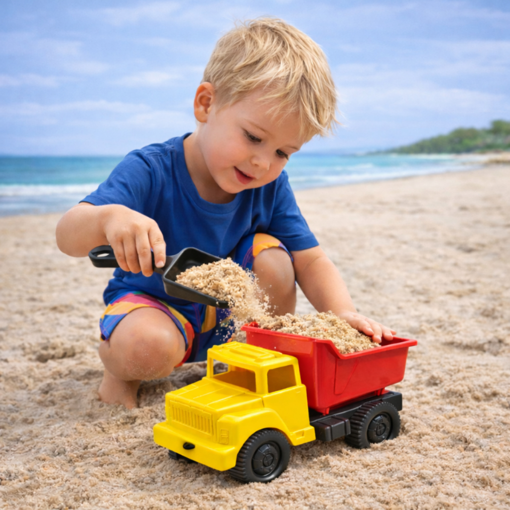 Kit Mini Caminhão Basculante Com Pá é um brinquedo ideal para brincadeiras ao ar livre, estimulando a imaginação e a coordenação motora. Perfeito para praia, parque, quintal ou caixa de areia, permite carregar e despejar areia/terra com facilidade, deixando a diversão mais completa. Especificações e característica: Conteúdo do kit: 1 mini caminhão basculante com pá de areia Dimensões do caminhão: 25 cm (comprimento) x 10 cm (largura) Dimensões da Pá: 13 cm (comprimento) x 4 cm (largura) Caçamba basculante para despejar areia/terra Rodas livres para empurrar e movimentar com facilidade Indicado para uso recreativo em ambientes externos e internos ( praia, parques, areia, quintal ).