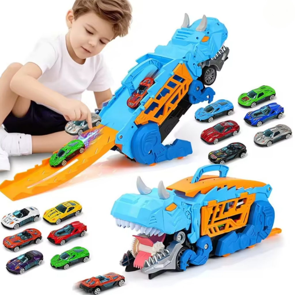 CAMINHÃO CEGONHA DINO 3 EM 1 - MALETA, PISTA E LANÇADOR Esse brinquedo incrível combina dinossauro + caminhão + pista de corrida, tudo em um só produto! Com um design super criativo, ele se transforma e surpreende em cada detalhe. ✅ Características: 🚛 Transforma-se em Pista de Corrida 🦕 Engole os carrinhos pela boca e solta pela traseira 🎨 Acompanha 3 carrinhos coloridos 👶 Feito para crianças a partir de 3 anos 💡 Estimula a criatividade, imaginação e coordenação motora 🔧 Não precisa de pilhas nem baterias 📦 O que vem na caixa: 1 Caminhão Dinossauro 4 Carrinhos sortidos de ferro (compatível com Hotwheels) 🔧 Funções 3 em 1 do Caminhão Dinossauro: 🧳 Maleta Portátil Leve para onde quiser! O dinossauro se fecha e vira uma maleta prática com alça, perfeita para guardar e transportar os carrinhos. 🛣️ Pista de Corrida Basta abrir a traseira e desdobrar a pista para uma corrida super divertida com os carrinhos incluídos! 🚀 Lançador de Carrinhos Empurre o dinossauro para frente e veja ele “engolir” os carrinhos pela boca e lançá-los pela cauda em alta velocidade! 🎁 Dica de presente perfeito! Ótimo para surpreender no aniversário, Natal ou qualquer data especial. As crianças vão amar ver o dinossauro engolir os carrinhos e soltá-los na corrida! 📏 Tamanho aproximado (A x L x C): ✔️ Caminhão Dinossauro: 13cm x 12cm x 33cm ✔️ Carrinhos: 2cm x 3cm x 7cm (cada) 🚚 Envio rápido e com segurança 📲 Ficou alguma dúvida ? Sinta-se à vontade para nos enviar uma pergunta! Nossa equipe de atendimento está pronta para te auxiliar da melhor forma possível!