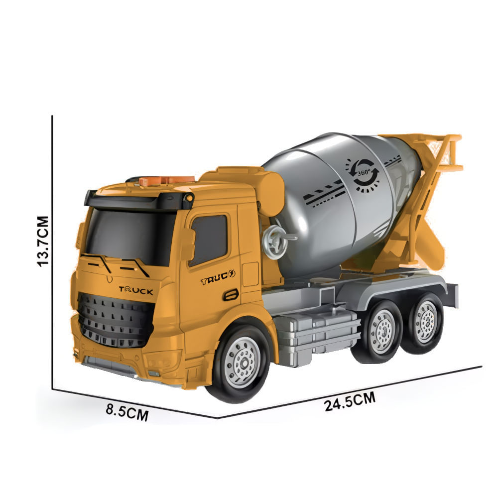 As cores podem variar entre as imagens mostradas acima e o produto. Imagens meramente ilustrativas. • Descubra o Caminhão com Betoneira da Superlegal, um brinquedo incrível que traz toda a diversão e detalhes de uma verdadeira betoneira para o tamanho compacto! Perfeito para pequenos engenheiros e amantes de construção, este modelo miniatura oferece uma experiência interativa e educativa, ideal para brincar em casa ou em qualquer lugar. Ao apertar os botões emite luzes e sons. O Caminhão com Betoneira tem fricção do tipo inércia ou seja ao empurra-lo ele continua avançando. Este brinquedo é o presente ideal para meninos de todas as idades, especialmente recomendado para crianças a partir de 3 anos de idade! • Conteúdo da embalagem: 01 Caminhão com Betoneira Características do Produto • Dimensões aproximadas da embalagem: 18x11x31cm (AxLxC) • Dimensões aproximadas do produto: 23 centímetros • Composição do material: Plástico • Código do fabricante: 328930 • Peso aproximado: 0.410 • Alimentação: 03 Pilhas LR44 1,5V Idade recomendada: A partir de 3 anos Certificado pelos Órgãos Autorizados - OCP´S (Organismos de Certificação de Produtos)