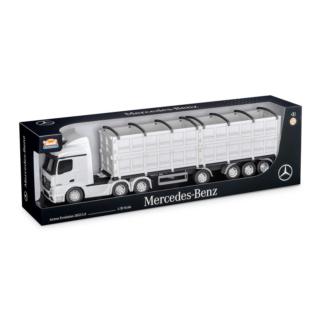 APRESENTANDO A VOCÊS — O INCRÍVEL LANÇAMENTO MERCEDES-BENZ ACTROS GRANELEIRO Com a mesma qualidade e atenção aos detalhes que os modelos anteriores, a Usual Brinquedos apresenta o Mercedes-Benz Actros Graneleiro. Um modelo fiel ao design robusto do caminhão real, ideal para quem busca um brinquedo funcional e esteticamente impressionante. O Actros Graneleiro é ideal para os entusiastas do setor de transportes e para as crianças que amam interagir com modelos de caminhões de carga. Seu implemento removível e as tampas laterais que se abrem fazem dele uma escolha irresistível para colecionadores e para quem deseja ampliar sua coleção de caminhões. Faz parte da coleção Mercedes-Benz Usual Brinquedos. Colecione! PERGUNTAS FREQUENTES 1 - Qual o tamanho do caminhão? O caminhão possui 14 cm de altura e 53 cm de comprimento. 2 - Produto original? Sim, produto original de fábrica, lacrado. 3 - As portas abrem? Sim, esse modelo possui tampas laterais se abrem para descarga. BENEFÍCIOS Estimula o raciocínio Exercita o imaginário Desenvolve a criatividade Promove socialização e interação Estimula habilidades motoras básicas Incentiva a comunicação e linguagem Desenvolve aspectos emocionais e afetivos CARACTERÍSTICAS Fabricação em plástico de alta qualidade Detalhes realistas Portas traseiras que se abrem Grafismo oficial da marca Cores exclusivas da linha Detalhes cromados FICHA TÉCNICA Marca: Usual Brinquedos Marca do caminhão: Mercedes-Benz Actros Escala: 1/30 Referência: 834 Tamanho caminhão (C x A x L): 53 x 14 x 09 cm Recomendação: Para crianças a partir de 03 anos de idade Embalagem (C x A x L): 61,5 x 18,5 x 13 cm Embalagem (Peso): 0.974 kg Material / Composição: Plástico Nº de Registro: 009922/2019 CONTEÚDO DA EMBALAGEM 1 Caminhão Mercedes-Benz Actros Graneleiro *** Conforme Disponibilidade *** INSTITUCIONAL Visando ainda maior qualidade e durabilidade dos produtos, nós utilizamos matéria-prima virgem de primeira linha. Todos os detalhes são acompanhados com carinho e cuidado para atender e satisfazer todos os envolvidos no processo — mas nossa maior alegria é saber que nossos brinquedos divertem e colaboram para o desenvolvimento criativo de milhares de crianças. GARANTIA Produto com garantia contra defeito de fabricação por 90 dias, contados a partir da data de compra. Troca e devolução conforme condições comerciais. AGUARDAMOS SUA COMPRA! VOLTE SEMPRE!!