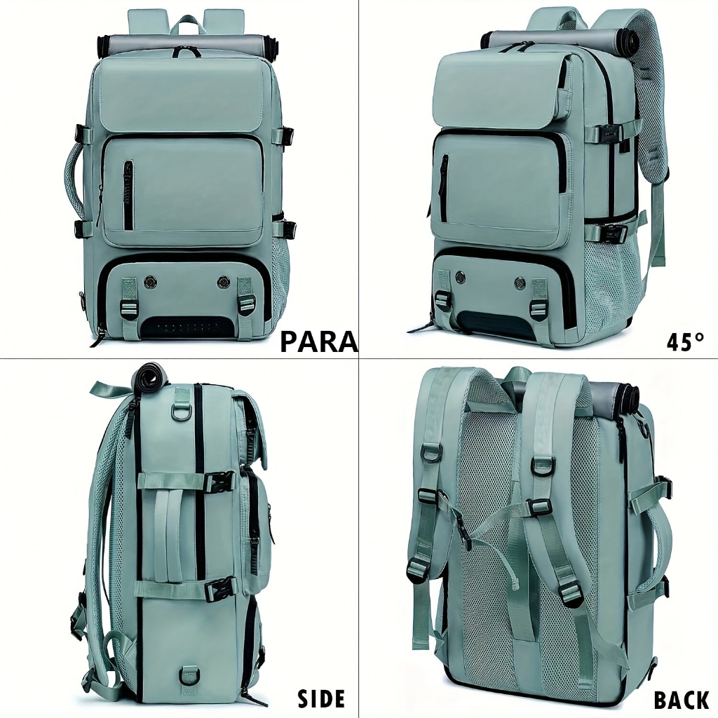 A mochila tem múltiplos bolsos para acomodar, com uma capacidade super grande de 50L. O tecido é feito de material de poliéster de alta qualidade que é amigável e espesso na pele, tornando-o confortável usar na costa. A mochila tem múltiplos desenhos funcionais detalhados para tornar a viagem mais conveniente. A mochila também tem um compartimento isolado exclusivo de sapatos, que pode ser usado em lugares externos como viagem, caminhada e saída.