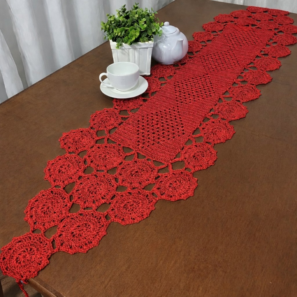 Caminho de mesa de croche feito a mao cozinha 1,40m