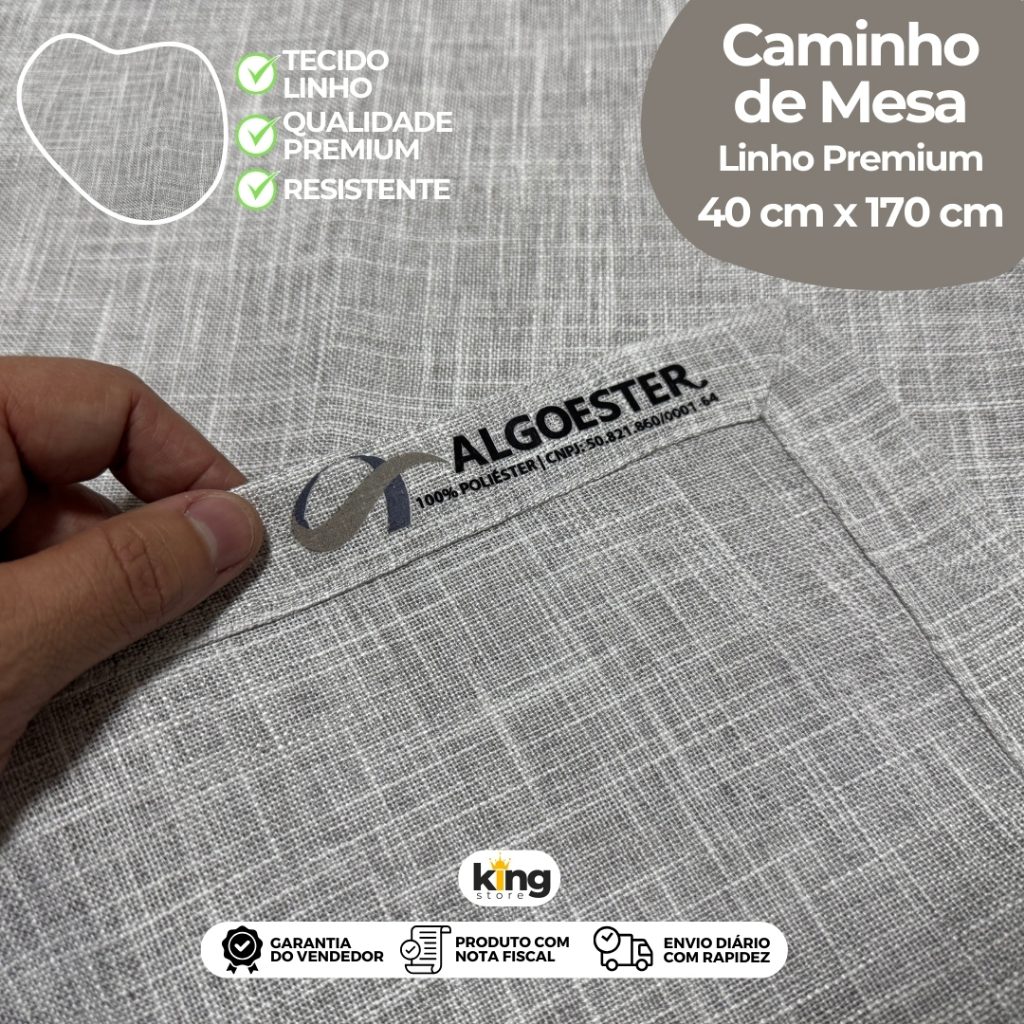ENVIO TODOS OS DIAS! Trilho de Mesa em Linho Sintético – Sofisticação e Elegância Clássica | 40x170 cm com Bainha Larga Transforme sua mesa com requinte e estilo. O Trilho de Mesa em Linho Sintético combina a beleza atemporal do linho com a praticidade de um tecido moderno e durável, ideal para composições sofisticadas no dia a dia ou em ocasiões especiais. ✨ Destaques do Produto Produzido em linho sintético encorpado, com visual sofisticado e acabamento impecável; Bainha larga de 2 cm, que garante caimento estruturado e refinado; Medida de 40 x 170 cm, perfeita para mesas retangulares, aparadores e buffets; Disponível em cores neutras e elegantes, que harmonizam com diversos estilos de decoração; Tecido de alta durabilidade, com aparência semelhante ao linho natural, mas muito mais prático de cuidar. ❓ Perguntas Frequentes (FAQ) 1. O tecido é linho puro? Não. O trilho é confeccionado em linho sintético, que imita o visual do linho natural, oferecendo maior resistência e facilidade de manutenção. 2. A bainha realmente é larga? Sim! O acabamento conta com uma bainha de 2 cm, um detalhe que diferencia a peça e valoriza sua apresentação. 3. Posso usar em mesas de vidro ou madeira? Com certeza. É um modelo versátil que valoriza qualquer superfície, seja vidro, madeira ou outros acabamentos. 4. Pode ser lavado na máquina? Sim, mas recomendamos lavagem à mão ou no ciclo delicado da máquina, para preservar a textura do tecido e o acabamento da bainha. 5. Serve para mesas de 6 lugares? Sim! A medida de 170 cm é ideal para mesas de até 6 lugares, podendo ser usado centralizado ou com caimento leve nas pontas. 🧼 Cuidados com o Produto Lavar à mão ou em ciclo delicado, com água fria; Não utilizar alvejantes; Não torcer – apenas pressionar suavemente para retirar o excesso de água; Secar à sombra, preferencialmente na horizontal; Passar a ferro em temperatura baixa a média; Evitar contato com superfícies ásperas ou objetos que possam puxar fios. ✔️ O Trilho de Mesa em Linho Sintético é a união perfeita entre beleza, qualidade e praticidade. ➡️ Adicione ao seu carrinho e leve sofisticação clássica para a sua casa!