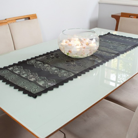 Caminho de Mesa Trilho Renda Preta 1,40 x 0,45 cm JCM