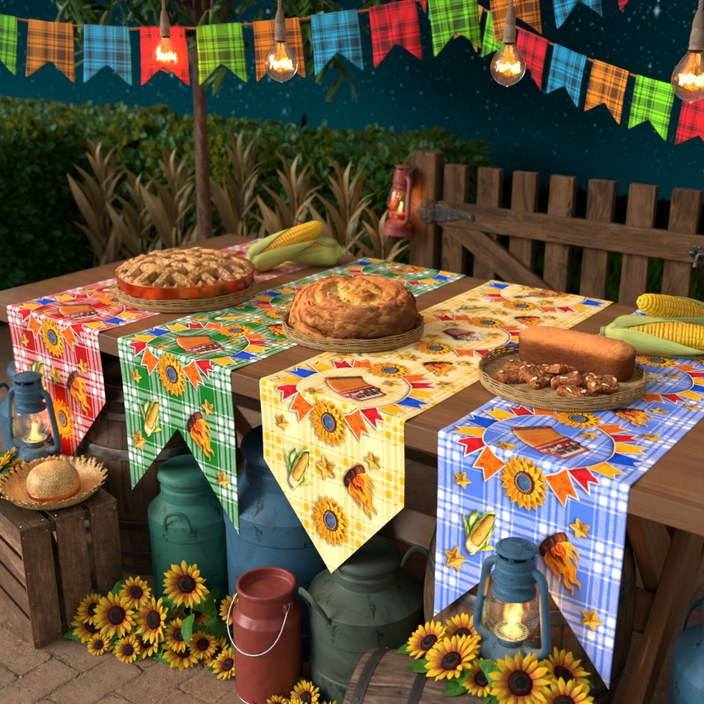 Caminho Trilho De Mesa Decorativo Festa Junina Xadrez 180x40cm Bandeirinhas Arraiá – TDM-122