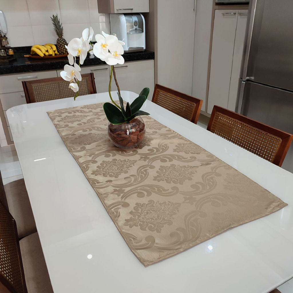Caminho Trilho De Mesa Decorativo Jacquard 1,40m X 0,50m - Avelã
