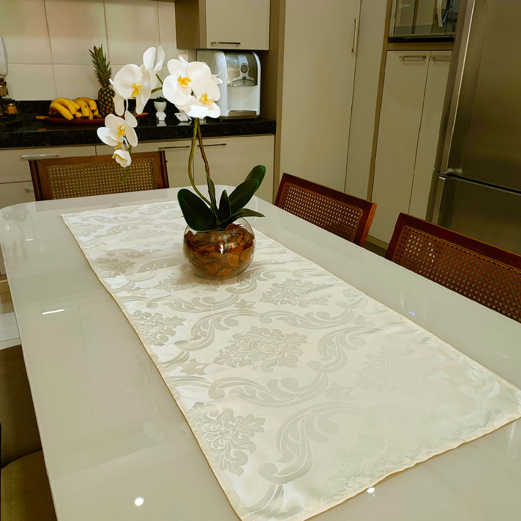 Caminho Trilho De Mesa Decorativo Jacquard 1,40m X 0,50m - Marfim