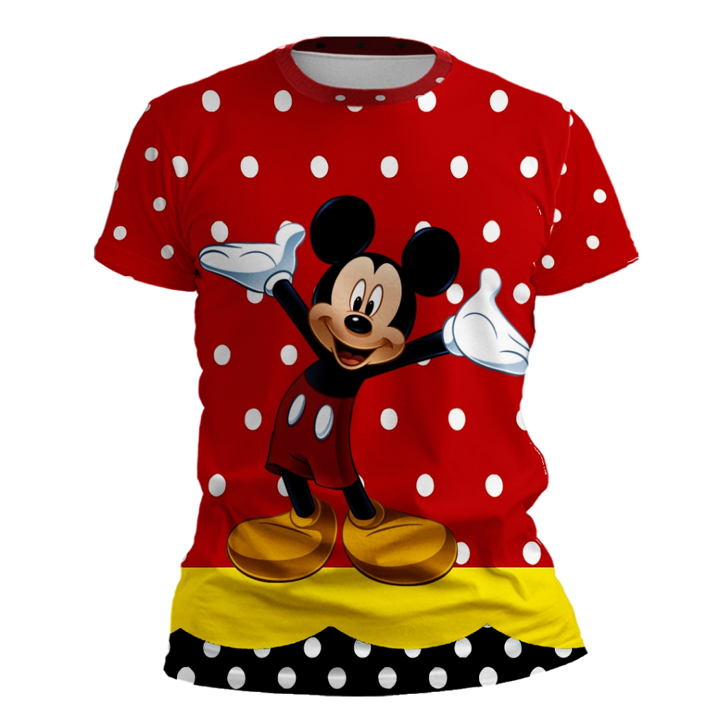 Camisa Adulta ou Infantil Mickey Vermelho Poá