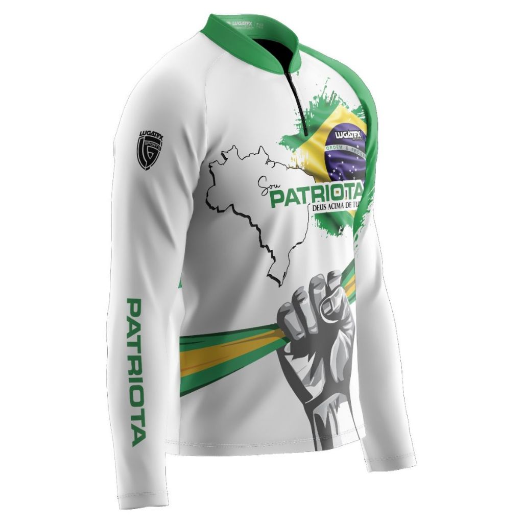 Camisa Agro Patriota Bandeira do Brasil Branca Com Proteção Solar UV+50