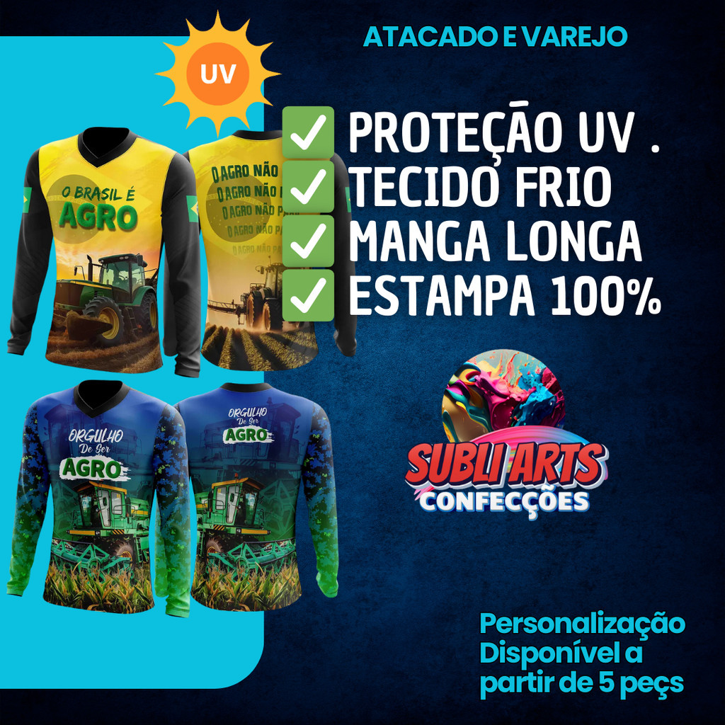 A camisa temática agro é perfeita para quem ama a vida no campo! Feita com tecido premium (92% poliéster, 8% elastano), ela oferece: ✅ Proteção UV ☀️ - Proteja-se dos raios solares enquanto trabalha ao ar livre. ✅ Tecido Frio e Respirável ❄️ - Leve, confortável e ideal para dias quentes. ✅ Manga Longa - Maior proteção contra sol, arranhões e insetos. ✅ Estampa 100% Exclusiva - Elementos da vida rural como animais, ferramentas agrícolas e natureza. ✅ Personalização Disponível - Customize com o nome do seu sítio, fazenda ou equipe (a partir de 5 peças). 🔥 Versátil e Funcional: Perfeita para o dia a dia na fazenda, eventos agropecuários ou até trilhas e aventuras. 📩 Quer personalizar? Entre em contato pelo chat! 🚀 Compre agora e vista o estilo agro com qualidade e proteção! 🔹 Diferenciais: Secagem rápida. Não desbota com o tempo. Perfeito para trabalho no campo e outras atividades ao ar livre. As camisas são unissex, adequadas para homens, mulheres e crianças. Oferecem um excelente caimento, garantindo conforto e estilo para todos os tipos de corpo. Observações e Orientações: Recomendamos comparar as medidas com alguma camisa que você já possua. Caso tenha dúvidas sobre as medidas ou personalização, entre em contato conosco pelo Chat.