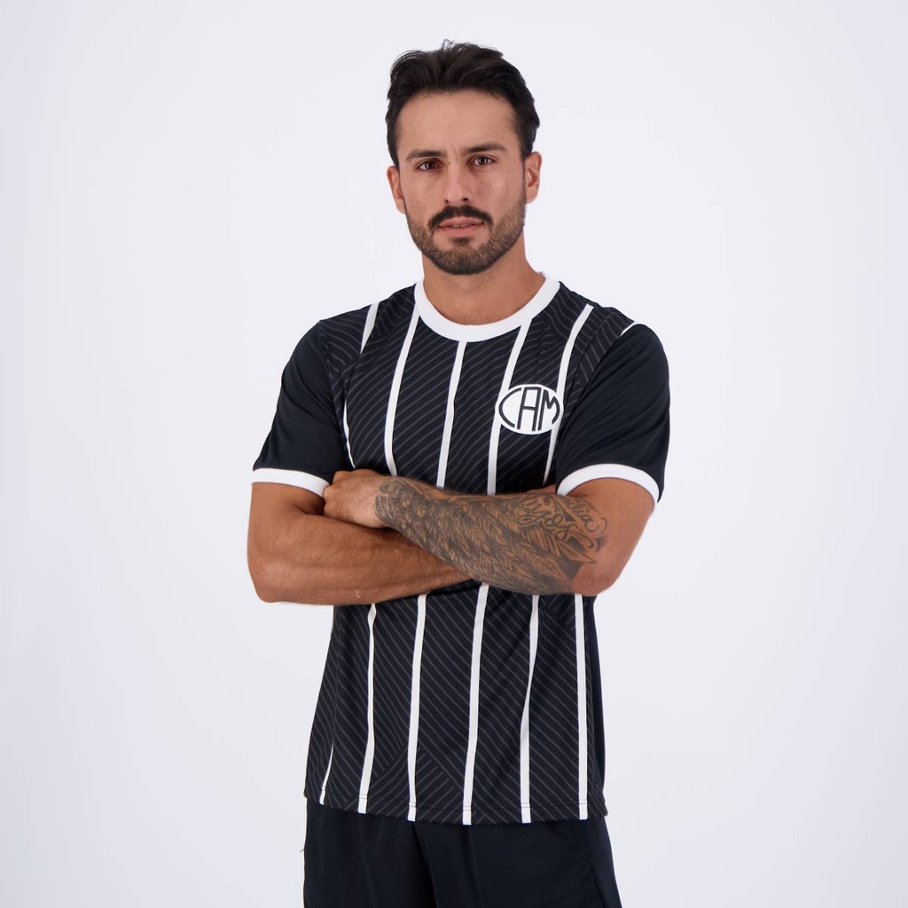 Composição: 100% Poliéster Cor predominante: Preta Clube: Atlético Mineiro Indicada para: Casual Escudo: Estampado Gênero: Masculino Origem: Nacional Manga: Curta Gola: Careca Dimensões aproximadas (A x L): P: 69 x 53 cm M: 71 x 55 cm G: 73 x 57 cm GG: 75 x 59 cm