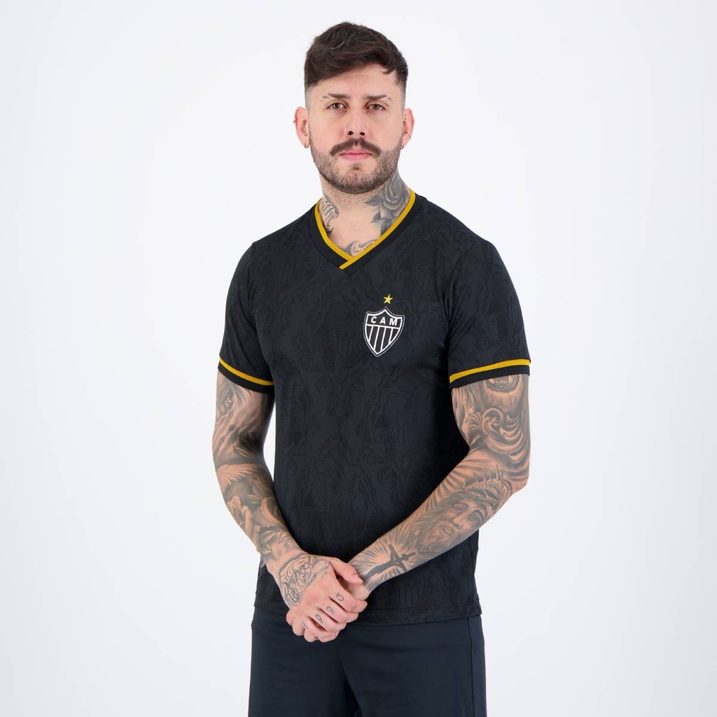 Composição: 100% PoliésterCor predominante: PretaClube: Atlético MineiroIndicado para: CasualGênero: MasculinoOrigem: NacionalEscudo: BordadoManga: CurtaGola: VDimensões aproximadas (A x L):P: 68 x 50 cmM: 70 x 52 cmG: 72 x 54 cmGG: 74 x 56 cmEG: 76 x 58 cm