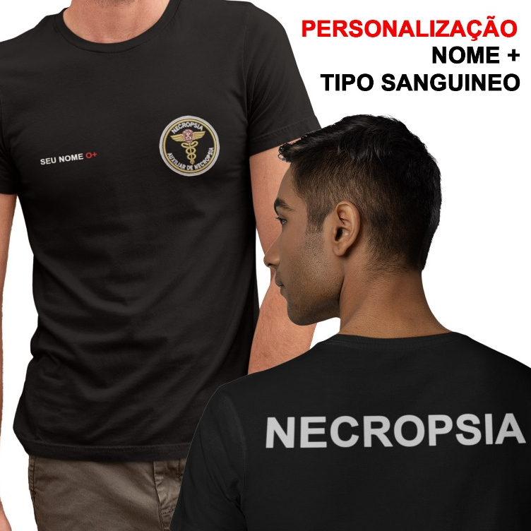Camisa Auxiliar de Necropsia Nome Personalizado Tipo Sanguíneo e Escrita Atrás Curso Necropsia