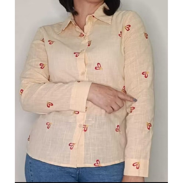 Camisa bordada tema corações, delicada, tecido plano 90 %algodão