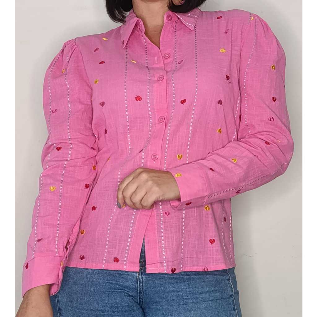 Camisa feminina bordada com corações coloridos Confeccionada em tecido leve 90% algodão e 10% Poliéster , confortável, perfeito para a estação. Ideal para compor looks com estilo, elegância, modernidade e romantismo. Camisa/Camisão