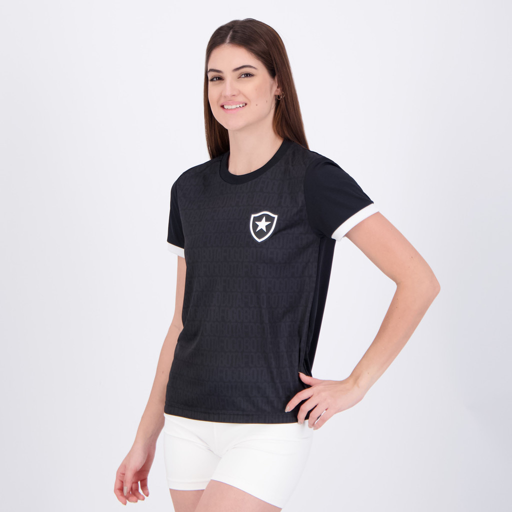 Composição: 100% Poliéster Cor predominante: Preta Gênero: Feminino Origem: Nacional Clube: Botafogo Escudo: Estampado Manga: Curta Gola: Careca Dimensões aproximadas (A x L): P (S): 61 x 44 cm M (M): 63 x 46 cm G (L): 65 x 48 cm GG (XL): 67 x 50 cm