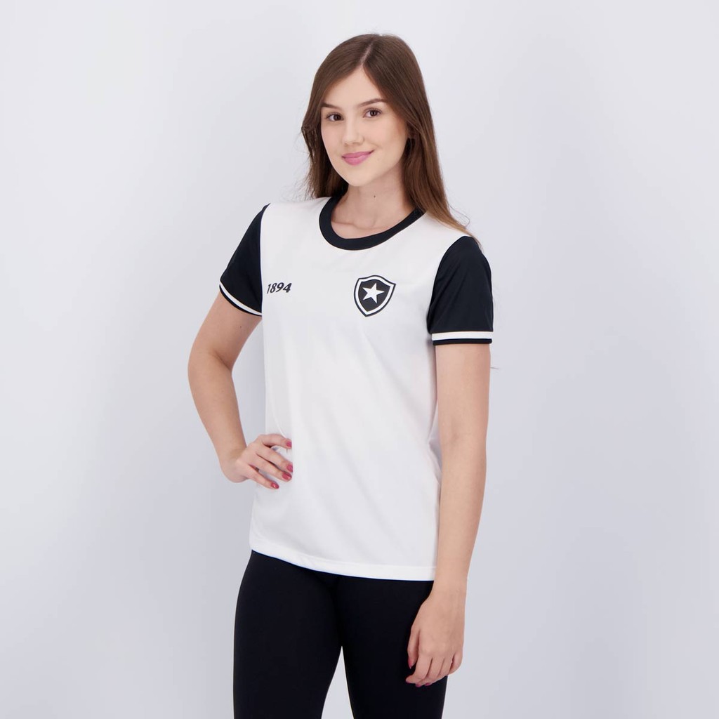 Composição: 100% PoliésterCor predominante: Branca Indicado para: CasualEscudo: EstampadoGênero: FemininoOrigem: NacionalClube: BotafogoManga: CurtaGola: CarecaDimensões aproximadas (A x L):P: 62 x 48 cmM: 64 x 50 cmG: 66 x 52 cmGG: 68 x 54 cm